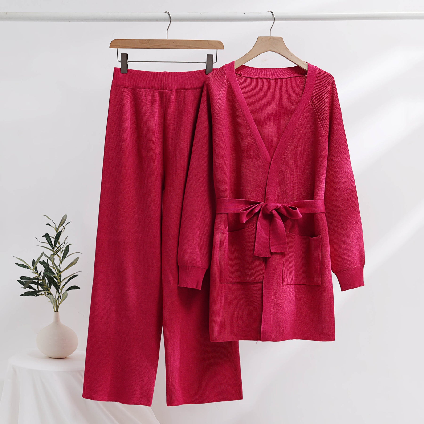- Gemakkelijk te combineren – De gebreide trui en broek kunnen eenvoudig gecombineerd worden met je favoriete accessoires voor een stijlvolle, complete outfit.