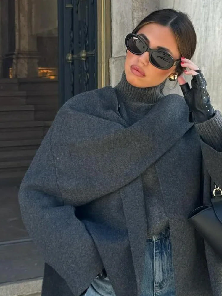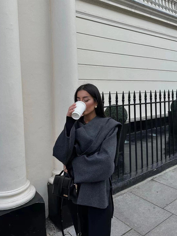 Norrina - Asymmetrische Gebreide Jas Met Sjaal voor Dames
