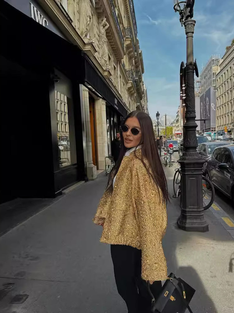 Sarah - Casual Bomberjack Met Gouden Pailletten voor dames