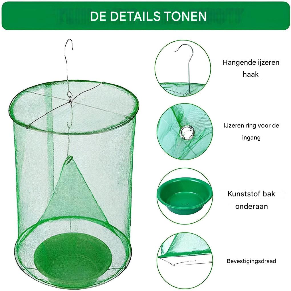 Houd vliegen op natuurlijke wijze weg met deze herbruikbare stalvliegenval – perfect voor schuren, stallen, tuinen en terrassen. Gemaakt van duurzaam gaas en voorzien van een geurloos, biologisch lokaassysteem, vangt hij vliegen totdat ze bezwijken aan de hitte, zonder schadelijke chemicaliën te gebruiken.
