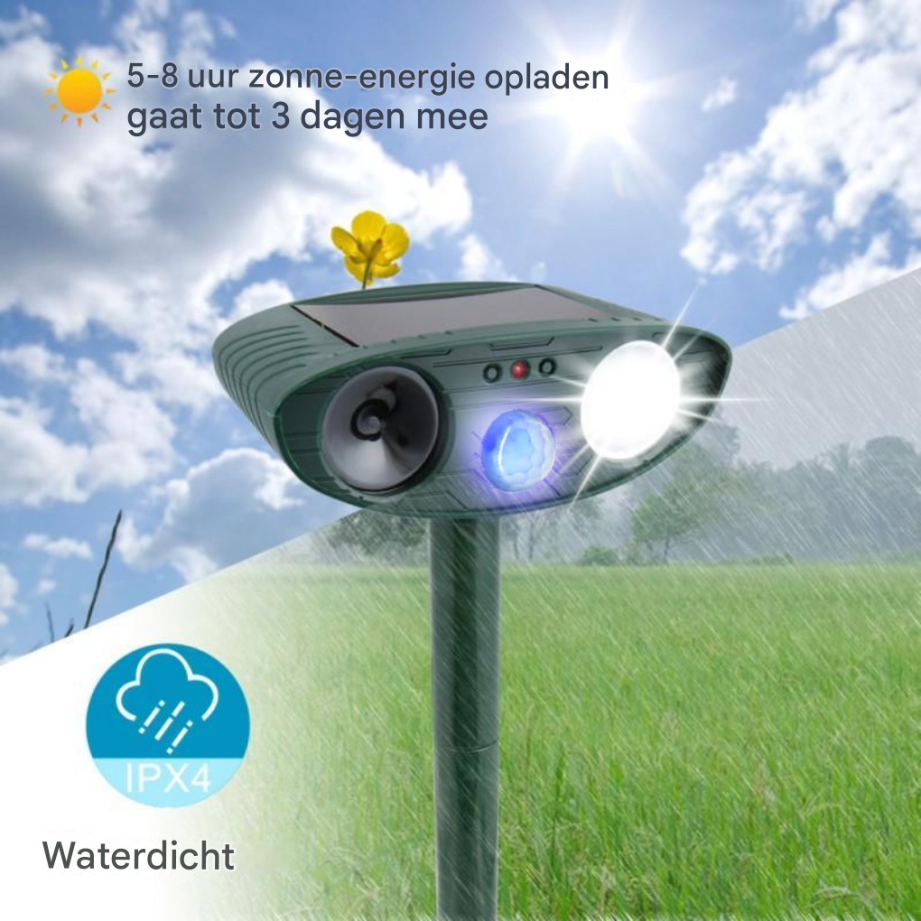 Bewegingsgedrafterde zonne-ultrasone dierenverjager