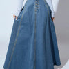 Geef je garderobe een vintage touch met de Aurora-mode.nl Avery denim rok. Deze lange A-lijn rok met hoge taille en knoopsluiting combineert moeiteloos casual elegantie met een vleugje streetwear.