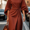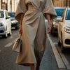 De Aurora-mode.nl GraceFlow is een stijlvolle en luchtige jurk die moeiteloos klasse uitstraalt. Deze mid-calf jurk met vleermuismouwen en flatterende tailleband accentueert het vrouwelijke silhouet, terwijl de soepele polyester stof licht valt en comfortabel draagt tijdens warme lente- en zomerdagen. Perfect voor zowel casual uitstapjes als elegante gelegenheden.
