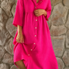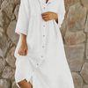 Deze losvallende overhemdjurk combineert ademend katoen en linnen tot de perfecte essential voor warm weer. Ontworpen voor dagelijks gemak, biedt het vloeiende silhouet, de knoopsluiting aan de voorkant en de klassieke kraag een veelzijdige look die naadloos overgaat van casual uitjes tot ontspannen weekendjes weg.