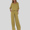 Relaxte pasvorm voor zowel top als broek - gemakkelijk te dragen en flatterend