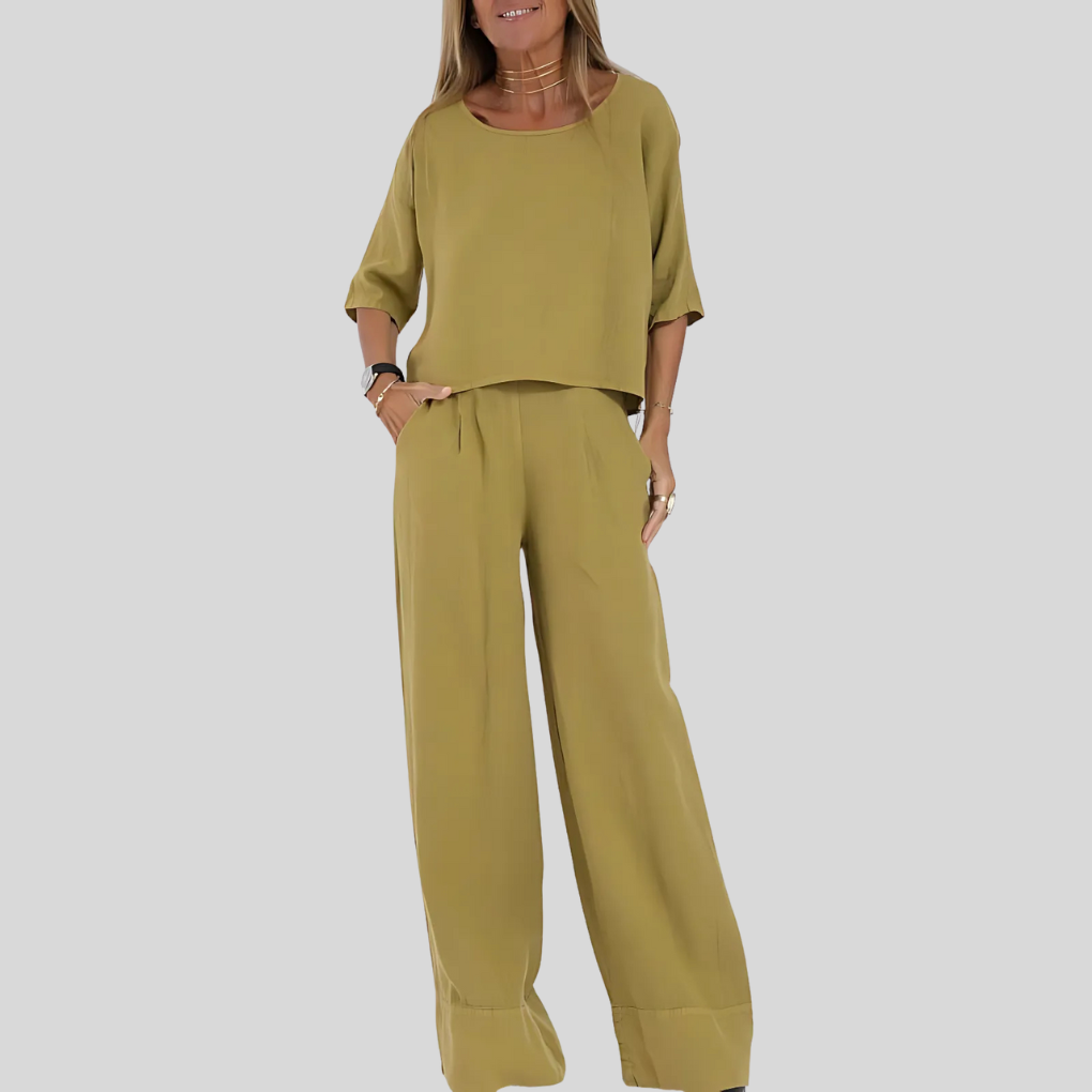 Deze set is perfect voor vakanties, casual uitjes of wanneer u thuiswerkt. Hij zorgt voor een verzorgde, verzorgde look met minimale inspanning. Voeg er sandalen of instappers aan toe en u kunt gaan!