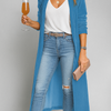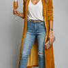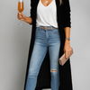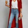 Ontdek de ultieme laagjesessential met dit vest, een lange, stoffige cardigan ontworpen voor moeiteloze elegantie en comfortabel comfort. Gemaakt van een zachte, lichte breistof, valt hij prachtig en voegt hij verfijnde warmte toe aan elke outfit. Met lange mouwen en een open voorkant is dit veelzijdige vest perfect voor casual looks, reizen of ontspannen werkkleding.
