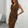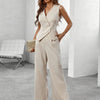 Elegante Mouwloze Blazer en Wijde Pijpen Broek Set
