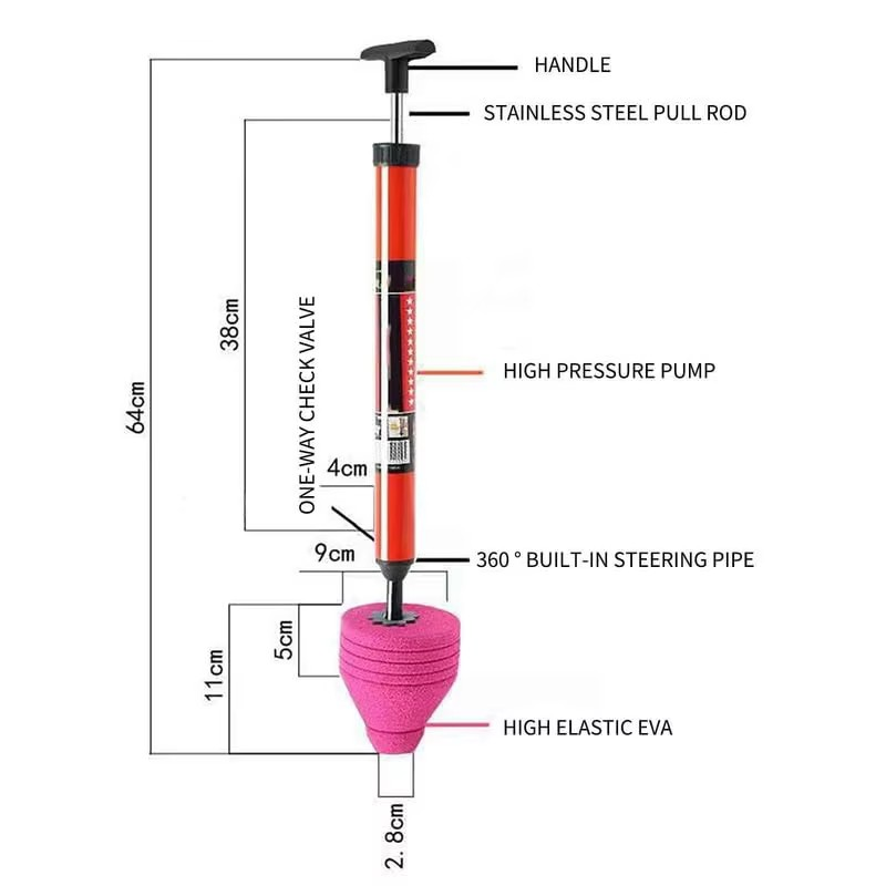 Hoge Effectiviteit – Het krachtige zuigmechanisme lost verstoppingen snel en efficiënt op, zelfs bij hardnekkige verstoppingen.